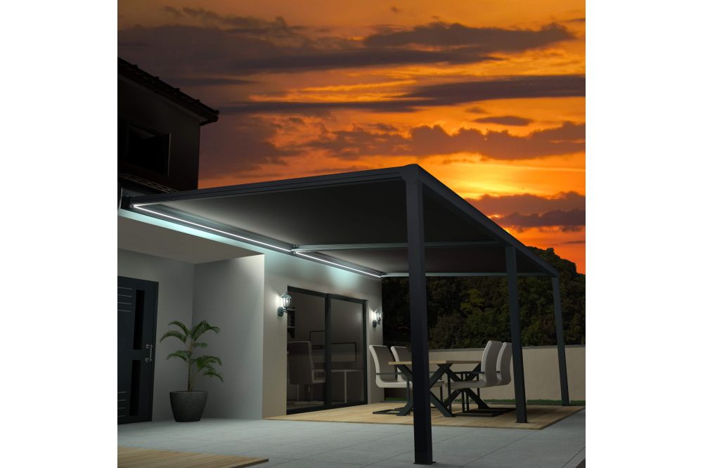 Pergola toile SUNLIGHT Gris anthracite - Gris anthracite 5,00x3,50m + LED