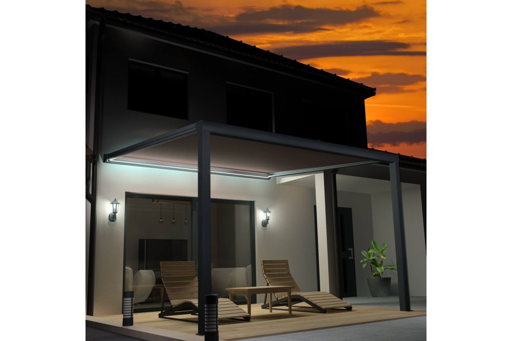 Pergola toile SUNLIGHT Gris anthracite - Taupe 4,00x3,50m + LED