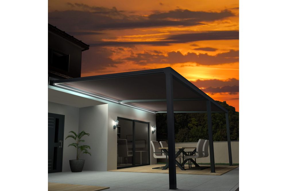 Pergola toile SUNLIGHT Gris anthracite - Taupe 6,00x3,50m + LED