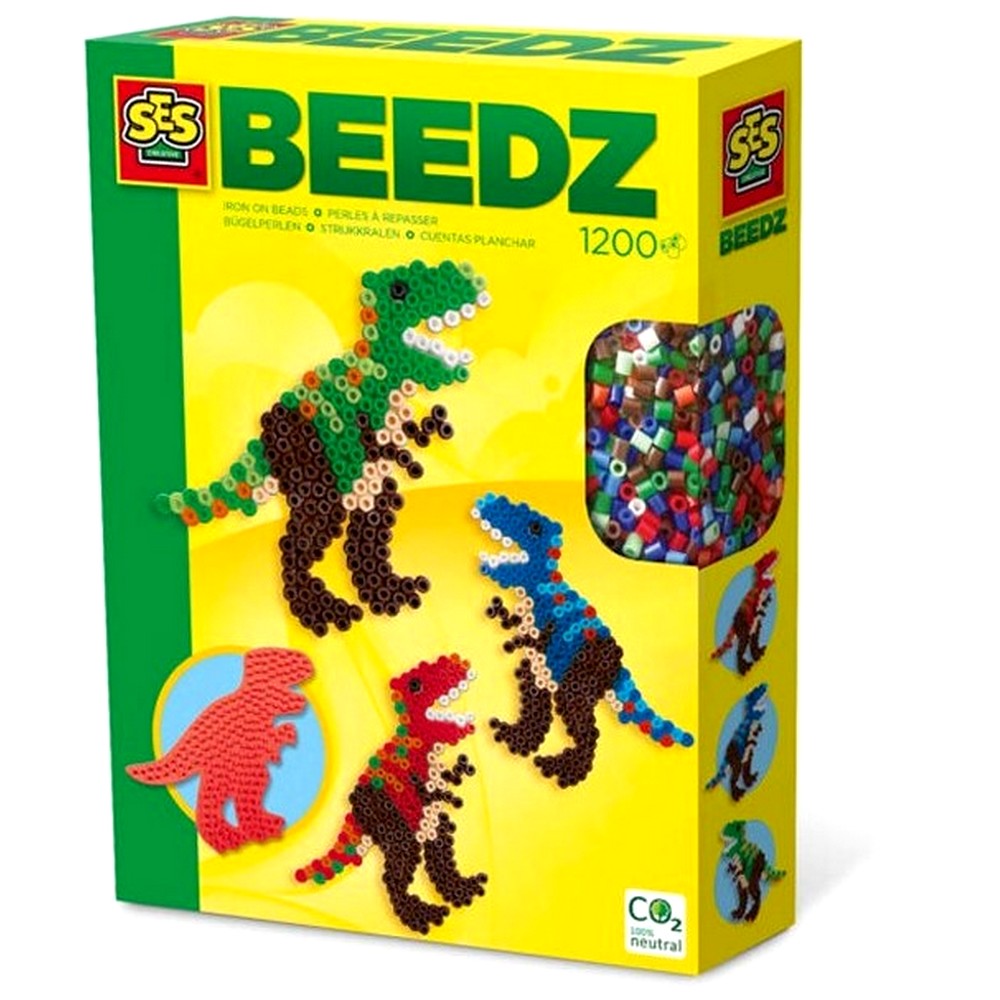 Aves les perles à repasser votre enfant confectionne les plus belles créations en posant des perles sur une plaque , et en les faisant fondre pour les attacher les unes aux autres avec un fer à repasser. Contient : 1 plaque 1200 perles multicolores Les créations de dinosaures doivent être repassés par des adultes.