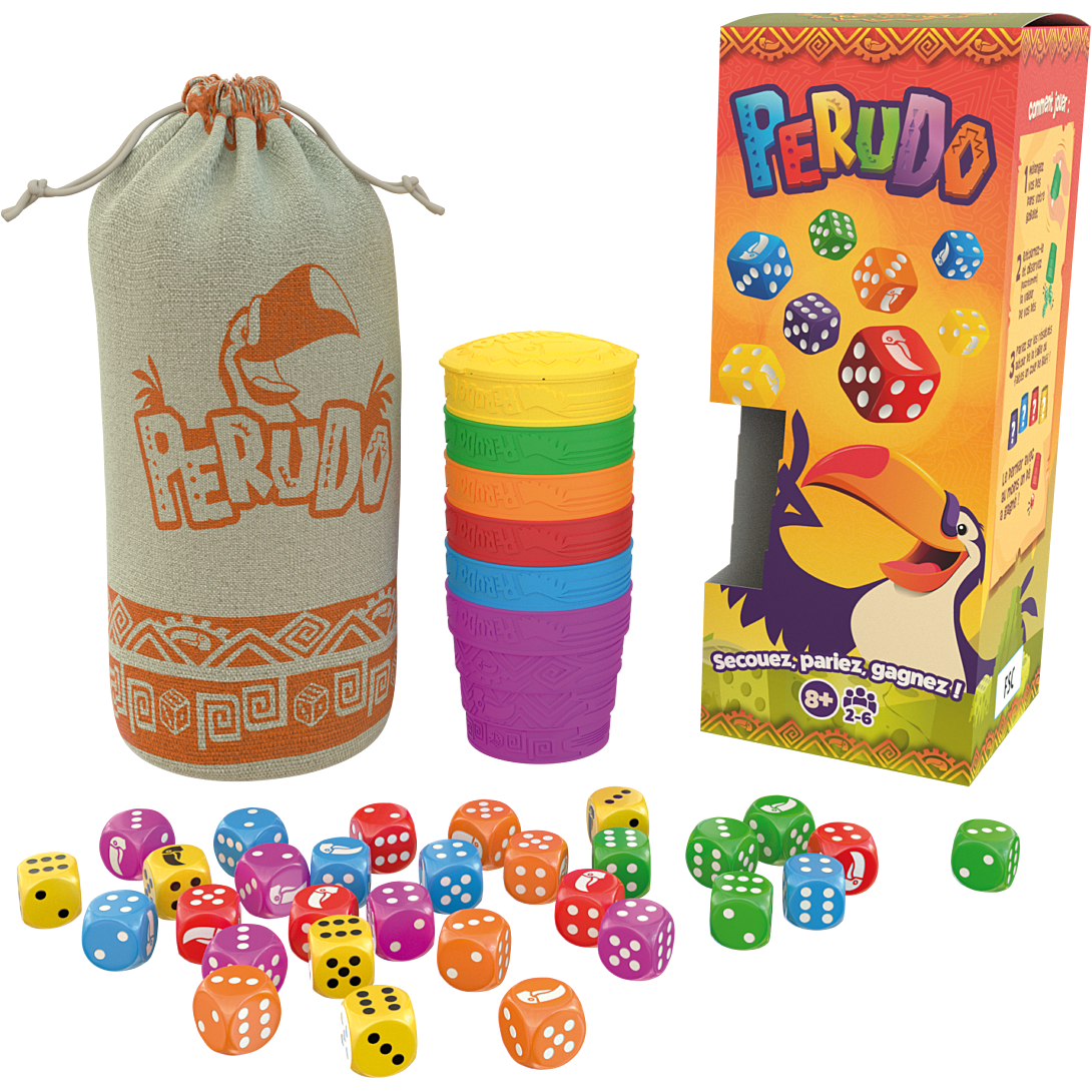 Lancez vos dés et cachez les résultats. Combien de 2 ou de 5 sur la totalité des dés de tous joueurs ? Surenchérissez ou doutez pour gagner la partie.
