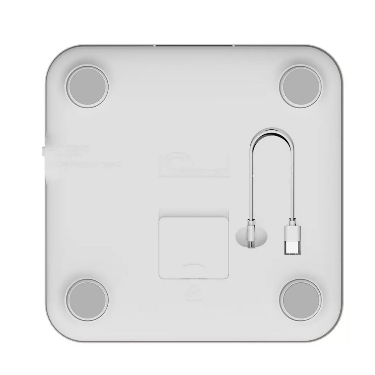 Impédancemètre connecté Fonctionne avec et sans application (grâce à la mémorisation des données). 1. technologie 4 électrodes 2. analyses corporelles : 17 3. sans piles - chargement USB-C 4. batterie remplaçable 5. rangement du câble 6. affichages directs écran : 8 7. double écran 8. 180 kg / 50 gr.