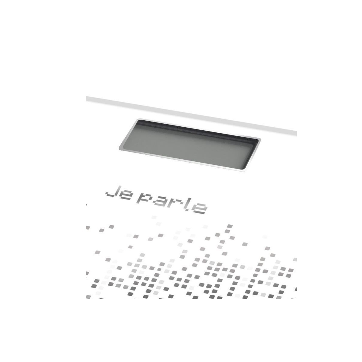 Pèse personne parlant voice 18 noir 1g - Pèse-personne Blanc - Voice 180 - Annonce du poids avec la fonction vocale avec réglage sonore - Mode vocal déconnectable par simple bouton - Portée 180 kg - Précision 100 g - Choix des unités - Plateau en verre trempé 31 x 31 cm avec décor pixels.