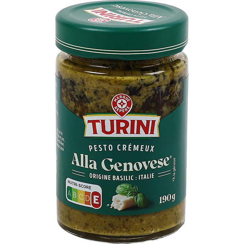 Ingrédients : Huile de tournesol, basilic 29,9 %, noix de cajou moulue 9 %, fromage Parmigiano Reggiano AOP 5 % (lait cru, sel, présure), fibre de maïs, poudre de lactosérum, sel, concentré de protéines de lactosérum, sucre, huile d'olive vierge extra 1 %, correcteur d’acidité : acide lactique, arôme naturel de fromage, purée d'ail 0,2 %, arômes naturels de basilic, antioxydant : acide ascorbique.