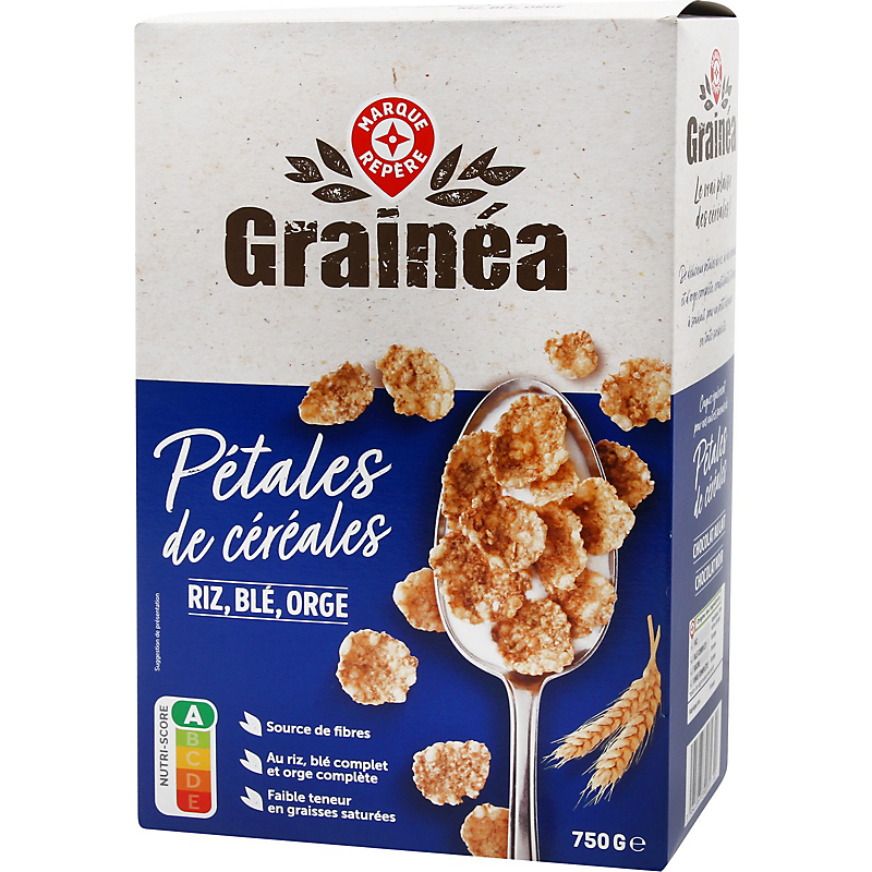 Pétales de riz, blé complet et orge complète, enrobés de sucre GRAINEA