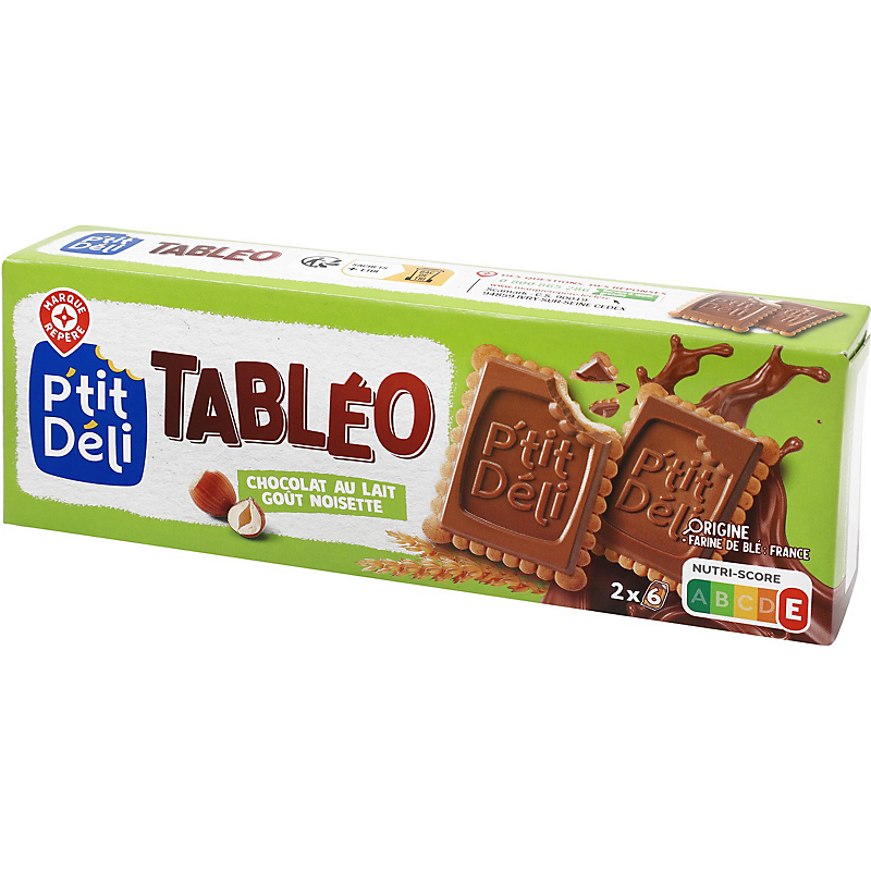 PETITS-BEURRE AVEC TABLETTE DE CHOCOLAT AU LAIT AUX NOISETTES, AROMATISEE P'TIT DELI