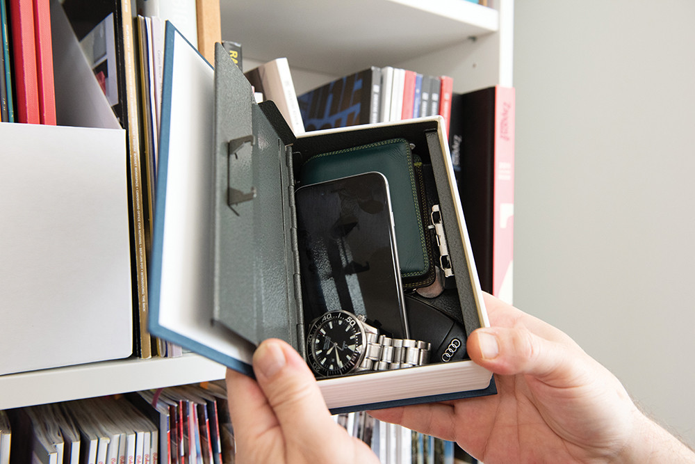 Livre coffre-fort en trompe l'oeil, parfait pour y cacher de petits montants en espèces, des documents importants et ou vos petits objets de valeur.