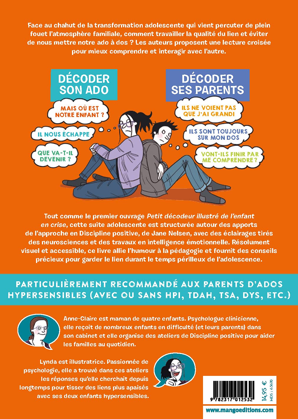 Tout comme le premier ouvrage Petit décodeur illustré de l'enfant en crise, cette suite adolescente est structurée autour des apports de l'approche en Discipline positive, de Jane Nelsen, avec des éclairages tirés des neurosciences et des travaux en intelligence émotionnelle. Résolument visuel et accessible, ce livre allie l'humour à la pédagogie et fournit des conseils précieux pour garder le lien durant le temps périlleux de l’adolescence.