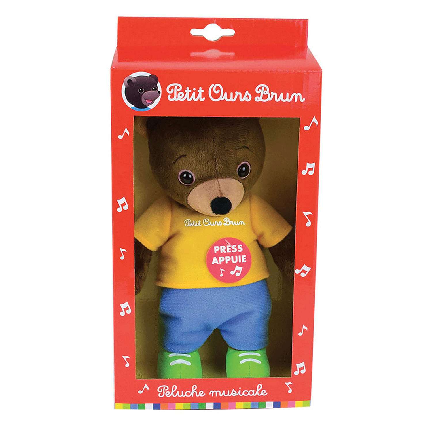 Votre enfant ne pourra pas résister devant cette peluche Petit Ours Brun musicale +/- 20 cm qui chante le célèbre générique "Oh Oh tiens voilà quelqu'un …" Il reprendra en cœur le célèbre générique avec sa peluche préférée. En peluche toute douce, votre enfant ne pourra plus s'en passer ! Elle fera plaisir à coup sûr ! Piles non accessibles - Lavable en surface