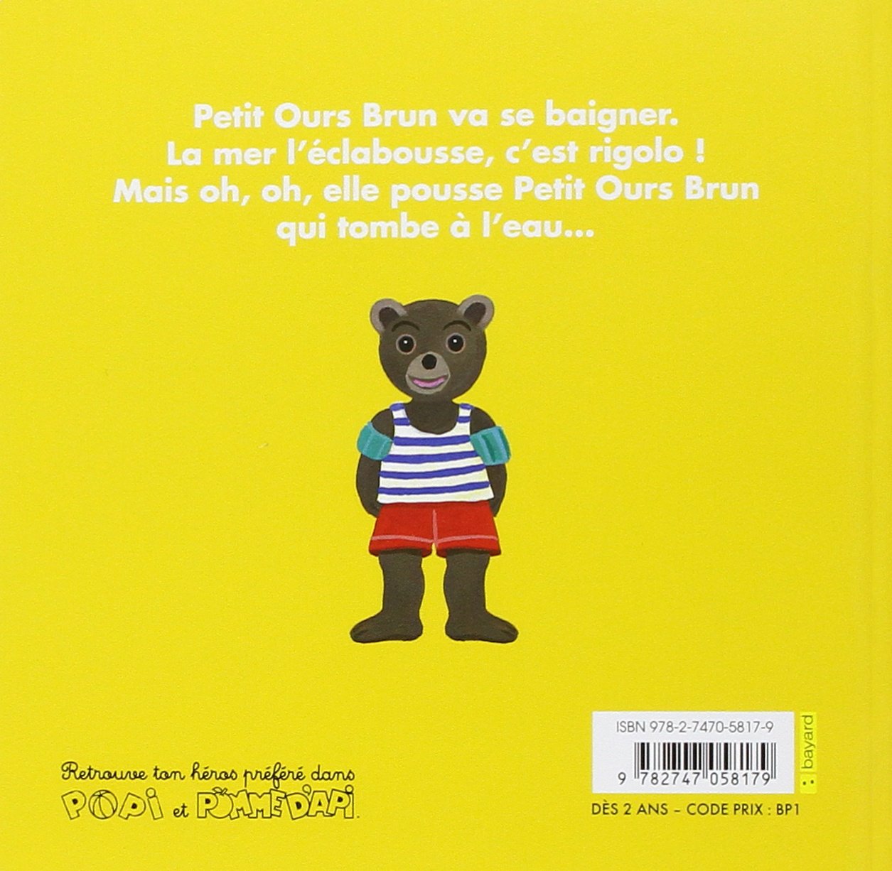 Petit Ours Brun va se baigner. La mer l'éclabousse, c'est rigolo ! Mais oh, oh, elle pousse Petit Ours Brun qui tombe à l'eau...