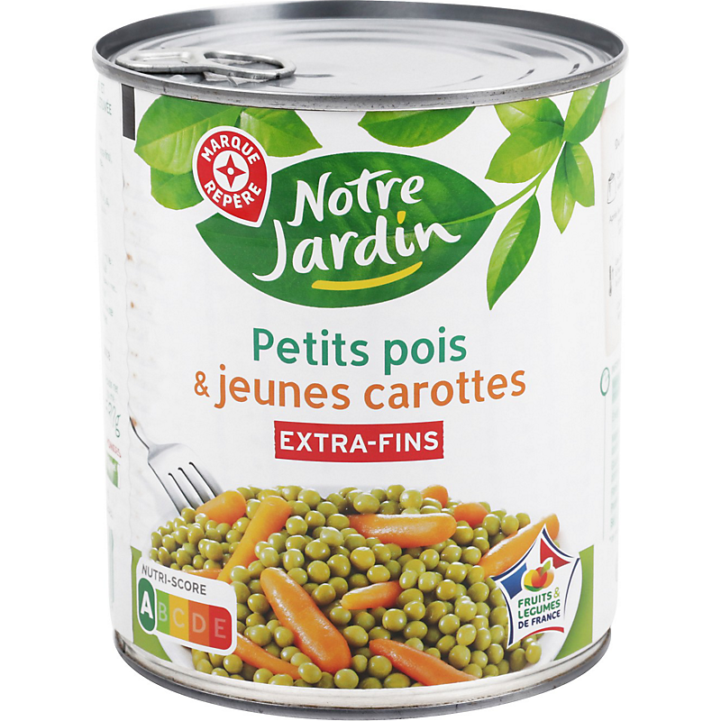 Ingrédients : Légumes en proportion variable (jeunes carottes, petits pois extra-fins), eau, sucre, sel, arôme naturel.