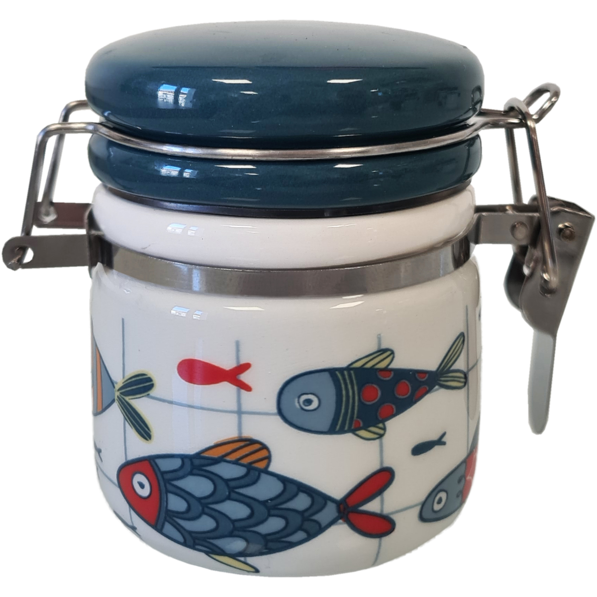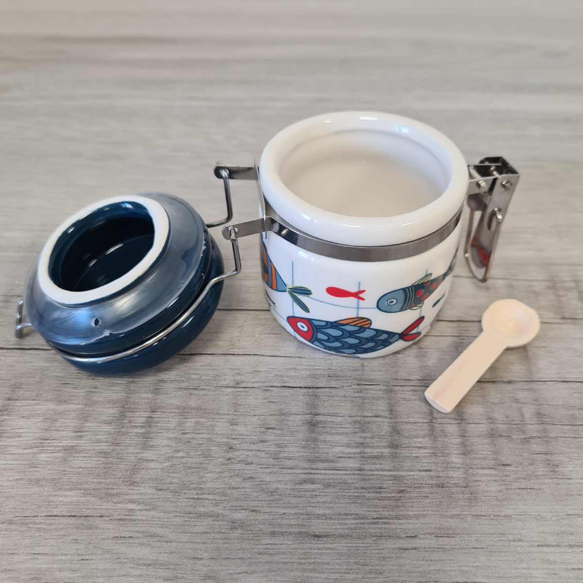 Petit pot hermétique à sel en Faïence avec cuillère en bois