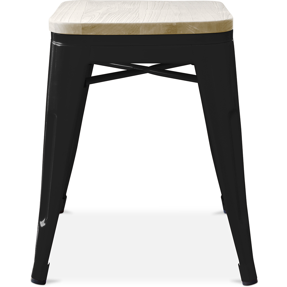 Petit tabouret industriel acier brillant et assise en bois massif naturel Reko 45cm-Couleur Rose clair