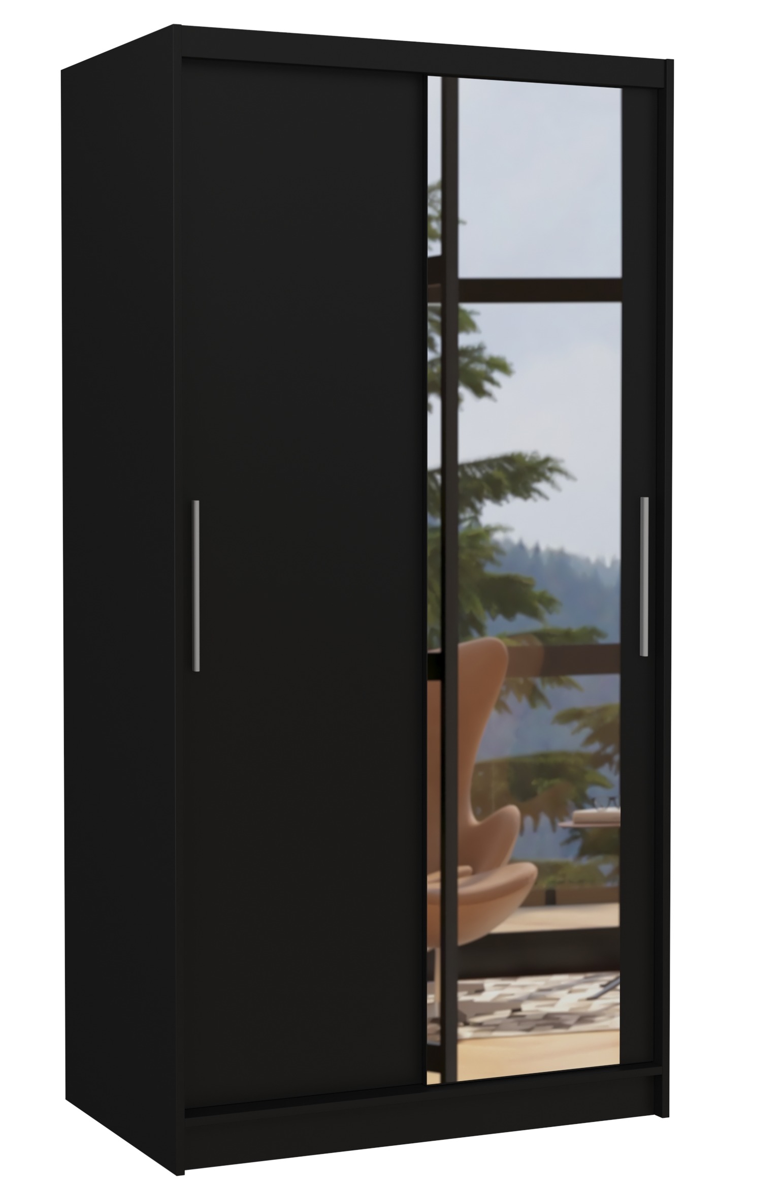 Petite armoire de chambre 2 portes coulissantes noir avec miroir Bazo 100cm
