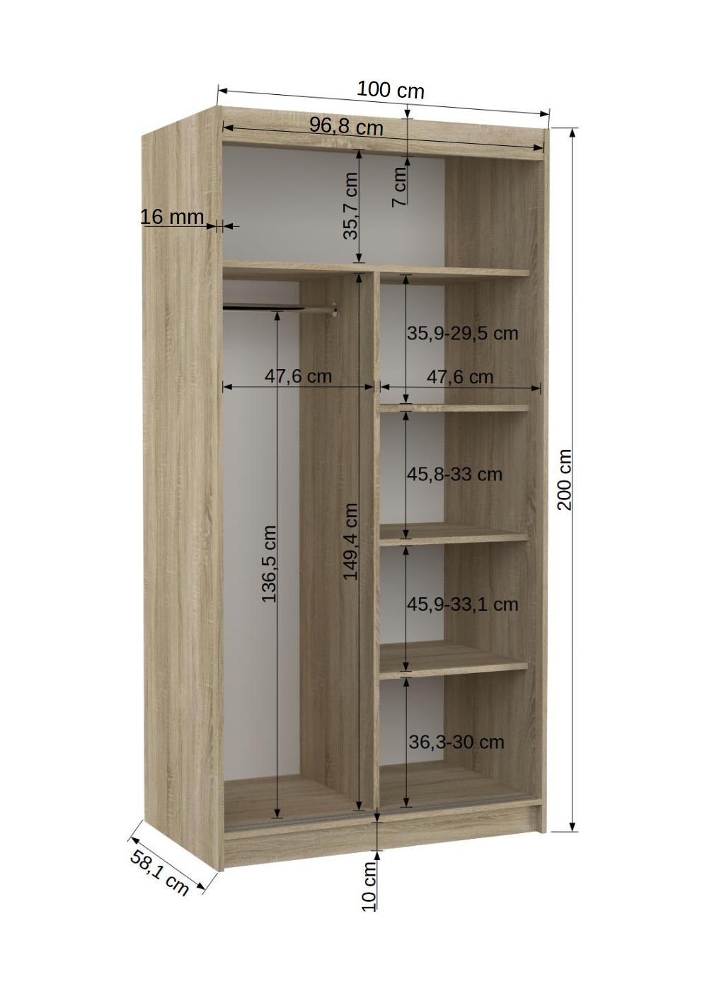 | Libellé | Petite armoire de chambre 2 portes coulissantes noir avec miroir Bazo 100cm |