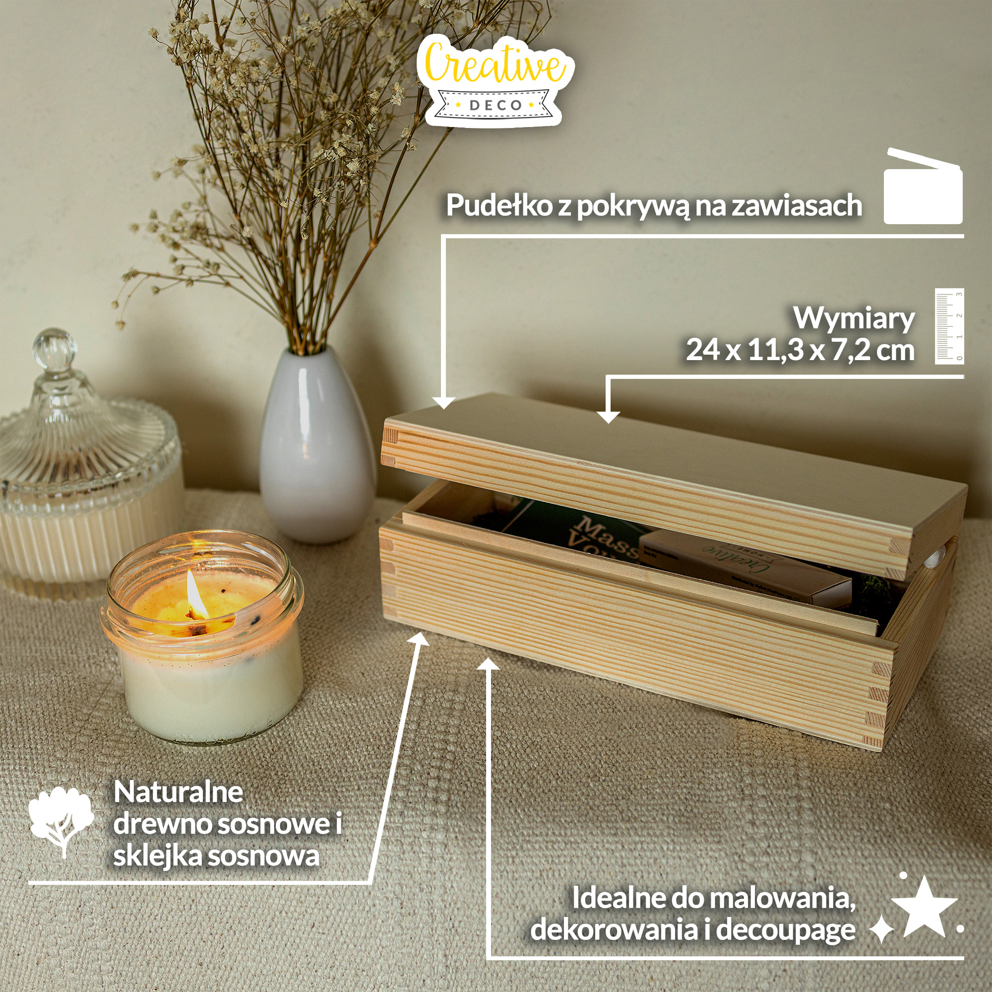 TAILLE PARFAITE – Avec des dimensions : externe de 24 x 11,3 x 7,2 cm et interne de 22 x 9,1 x 4,5 cm, ce boite est parfait pour stocker et ranger tous les documents, les objets de valeur, les jouets, les vêtements, les accessoires et les bijoux. Idéal pour le cadeau d’anniversaire, de baptême, de Noël, de Pâques, ou de souvenir. PARFAIT POUR TOUS LES ÂGES – Bords arrondis non tranchants qui le rendent sécuritaire à utiliser pour tous les âges comme les enfants, les adolescentes ou les adultes ! Parfait pour le découpage, le bricolage, la teinture, le vernissage, la pyrogravure, l'artisanat, la présentation des produits et d'autres projets ! GRANDE QUALITÉ – Le bois de pin provient des forêts durables des Carpates qui sont connus pour atteindre l'une des meilleures qualités de bois au monde. Le bois de pin provient des forêts durables des Carpates qui sont connus pour atteindre l'une des meilleures qualités de bois au monde. ORGANISATION D’ESPACE – Vous voulez créer un produit selon vos besoins et vos goûts ? Vous pouvez modifier cette grande boîte de rangement comme vous le souhaitez en fabriquant vos propres séparateurs, ou en la peignant et en la décorant. Maintenant, vous pouvez profiter de votre espace propre et organisé grâce à notre boîte à souvenirs !