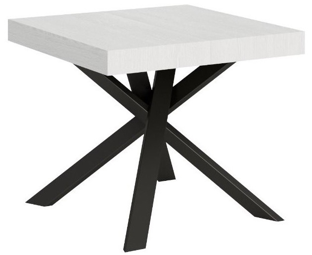 Petite table carrée extensible 90x90-194 pieds acier anthracite Karzy-Couleur Blanc