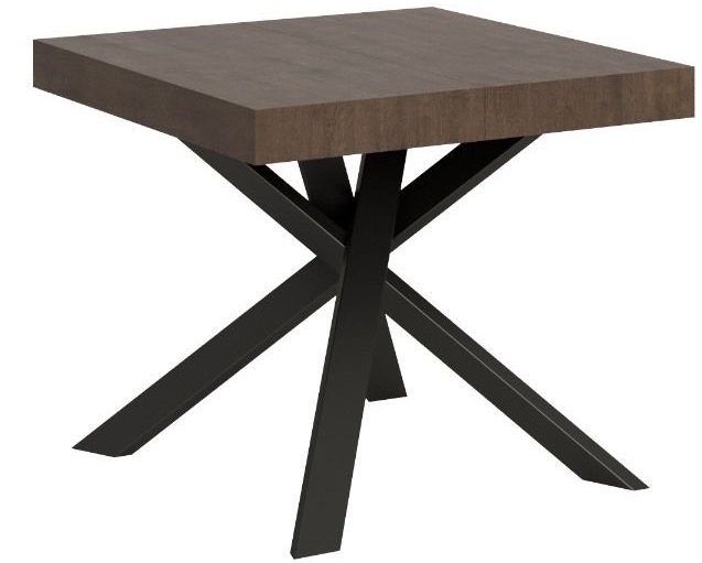 Petite table carrée extensible 90x90-194 pieds acier anthracite Karzy-Couleur Marron
