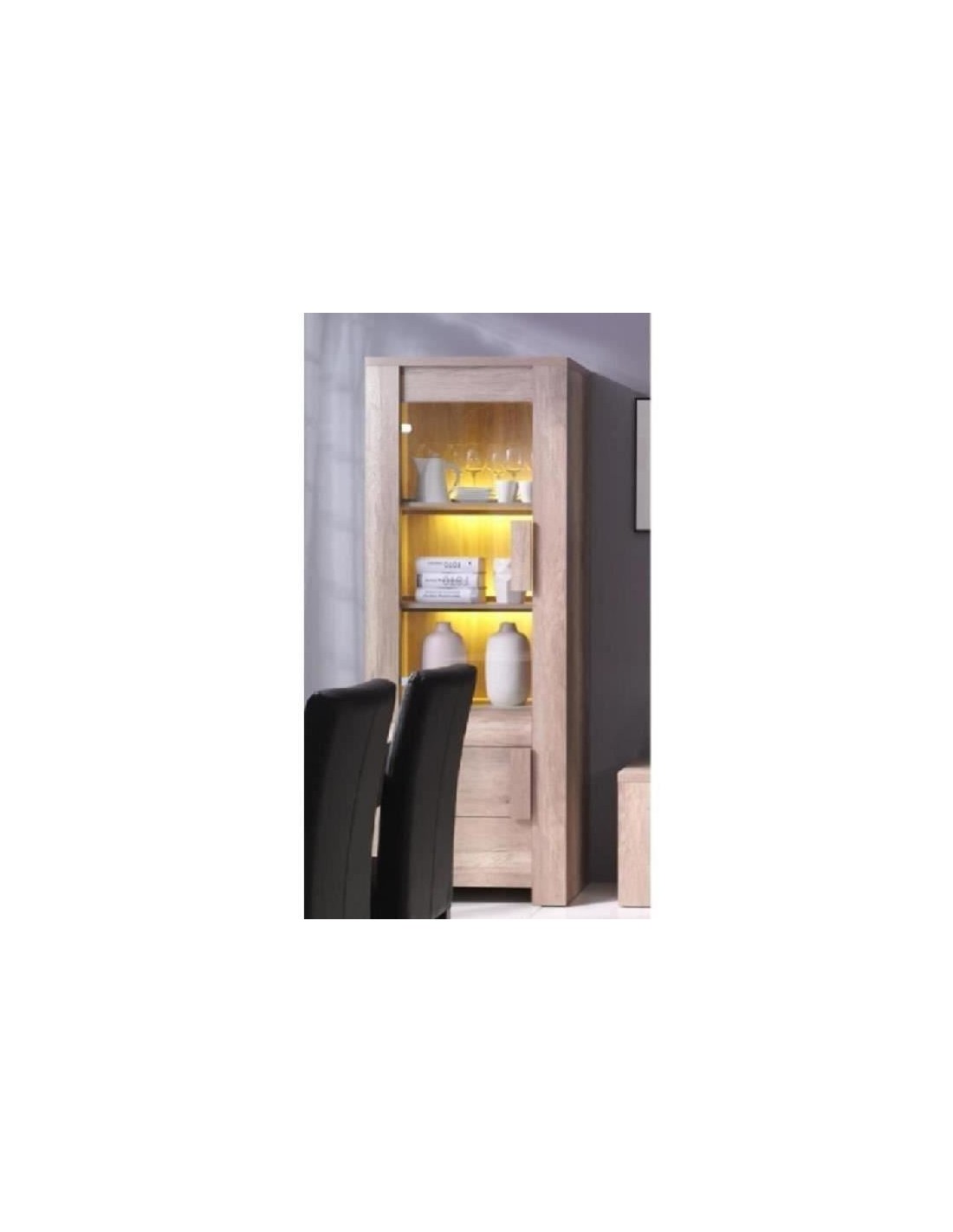 Petite vitrine moderne 2 portes - Collection FARRA en chêne clairLa petite vitrine FARRA en chêne clair est idéale pour mettre en valeur vos objets de décoration et autres articles précieux. Avec ses 2 portes vitrées, elle offre une excellente visibilité tout en les protégeant de la poussière. Son design élégant et compact s'intègre parfaitement dans les intérieurs modernes, ajoutant une touche de sophistication à votre salon ou salle à manger.caractéristiques du produit :type de produit : petite vitrine 2 portesdimensions :largeur : 72 cmhauteur : 195 cmprofondeur : 47 cmmatériau : panneaux de particules de première qualitécoloris : chêne clairpoids : 58 kgnombre de colis : 2ECLAIRAGE LED NON INCLUSavantages de la vitrine FARRA :design moderne : finition en chêne clair pour un look naturel et contemporain.exposition optimale : 2 portes vitrées pour une visibilité maximale de vos objets de décoration.qualité durable : fabriquée avec des matériaux robustes pour une longue durée de vie.pourquoi choisir notre vitrine FARRA ?élégante et pratique : une vitrine qui allie fonctionnalité et design pour sublimer votre intérieur.adaptabilité : idéale pour les intérieurs modernes et épurés.facilité d'entretien : surface lisse, facile à nettoyer avec un chiffon humide.