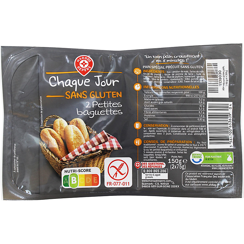 Pain spécial précuit sans gluten CHAQ. JR S/ GLUTEN