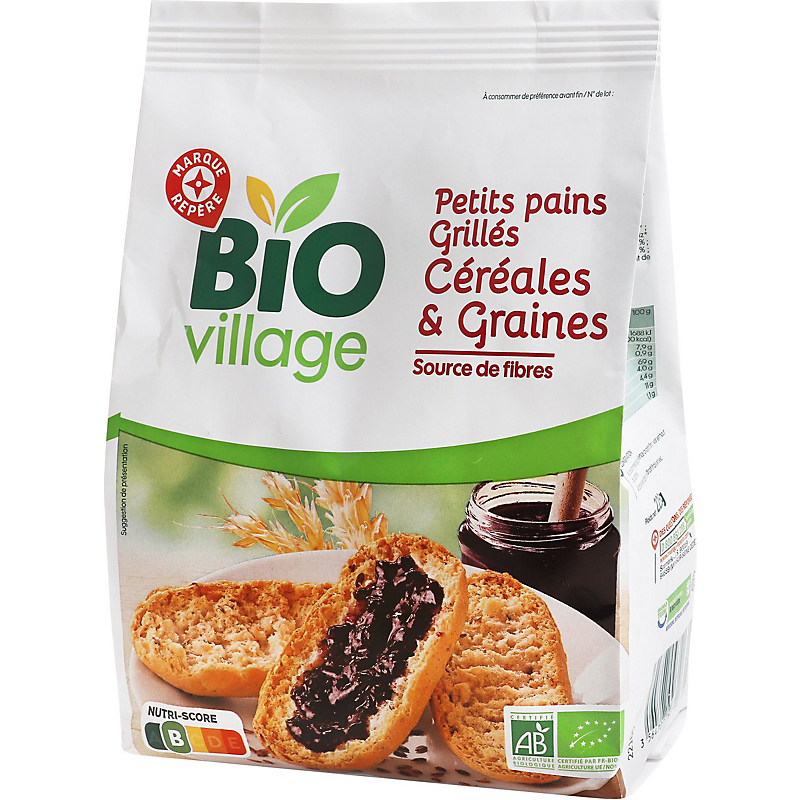 Petits pains grillés aux céréales et aux graines - Produit issu de l'agriculture biologique BIO VILLAGE