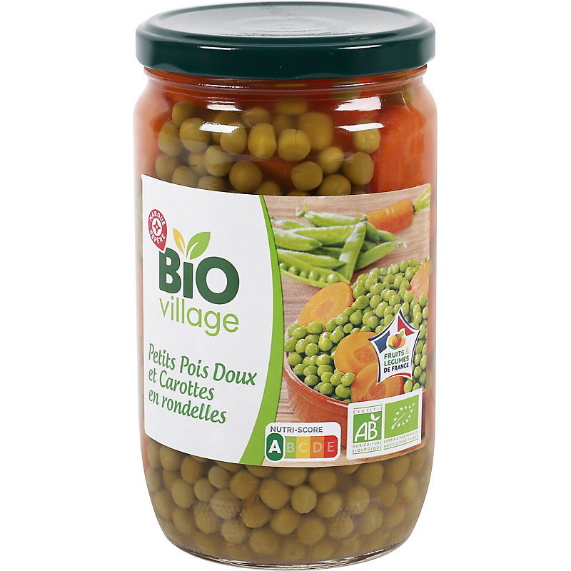 Petits pois doux et carottes en rondelles - Produit issu de l'agriculture biologique BIO VILLAGE