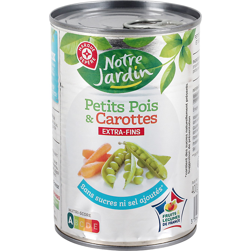 Petits Pois Et Carottes Extra Fins Sans Sucres Ni Sel Ajoutés-265G - NOTRE JARDIN