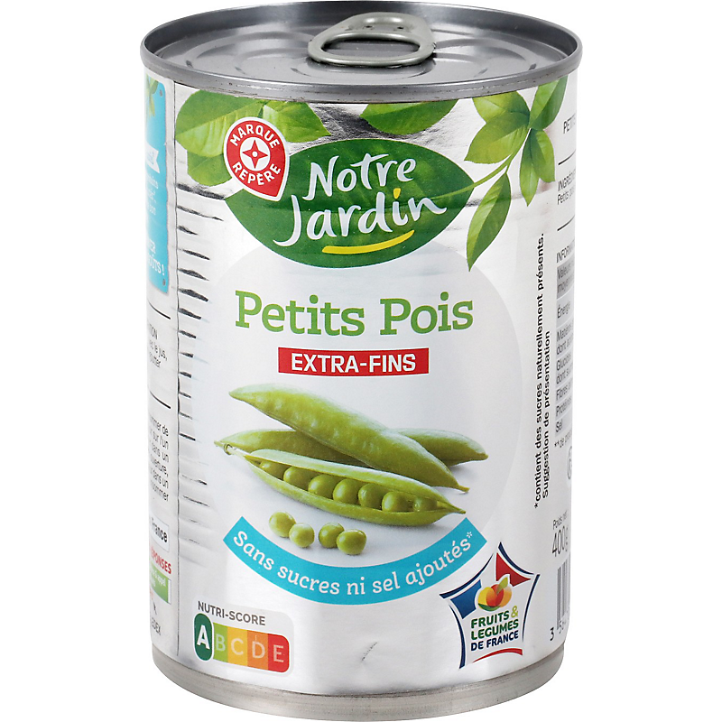 Petits Pois Extra Fins Sans Sucres Ni Sel Ajoutés-280G - NOTRE JARDIN