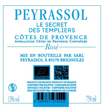 | Libellé | Peyrassol le secret des templiers BIO, 2025 - Côtes de Provence AOP - Rosé - 75 cl |