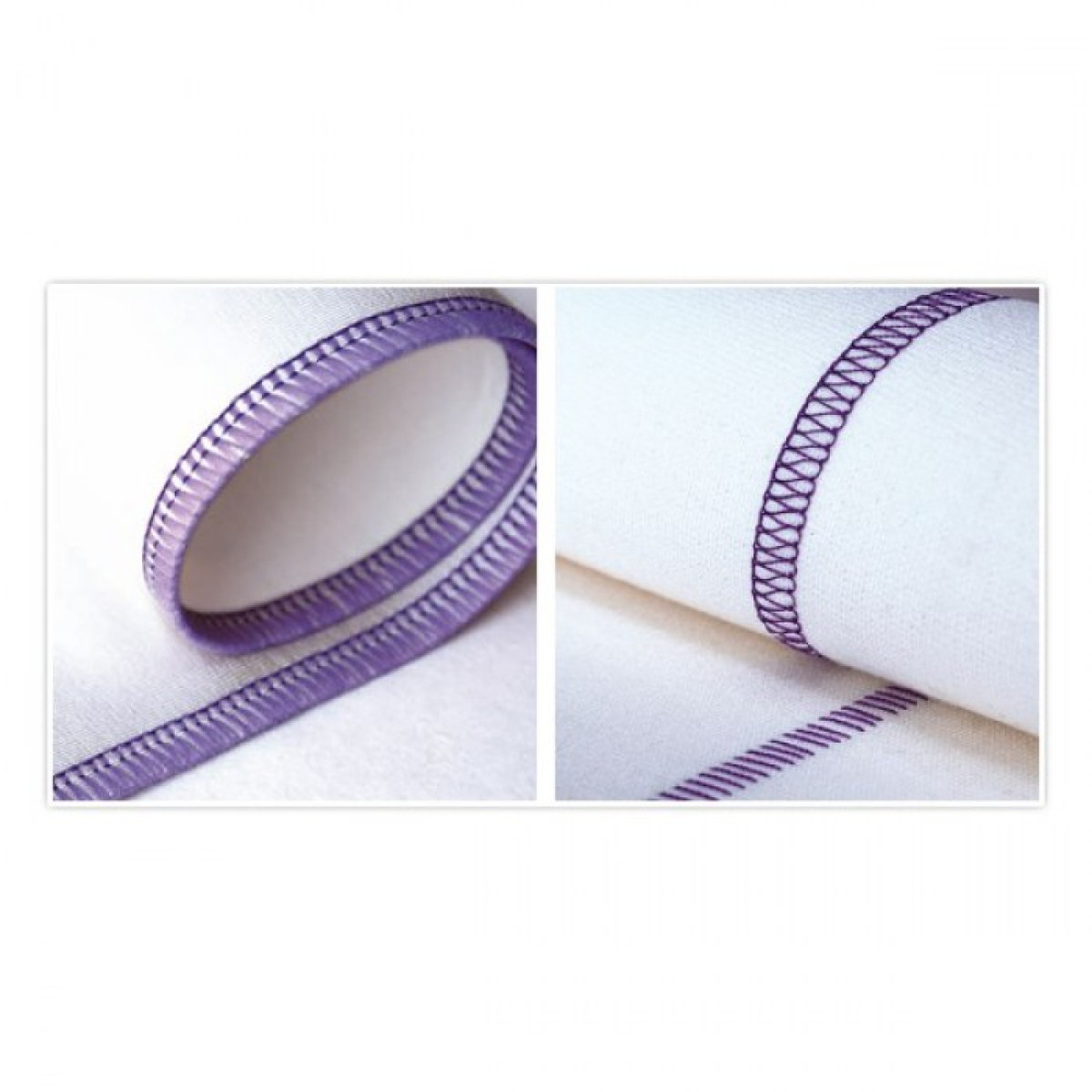 Ajoutez des accents attrayants avec le point de surjet plat tridimensionnel - un véritable accroche-regard. Ou donnez un aspect encore plus gai avec un fil décoratif. Utilisez un ourlet roulé classique pour donner une finition élégante aux accessoires de mode en soie ou en mousseline de soie les plus pures.