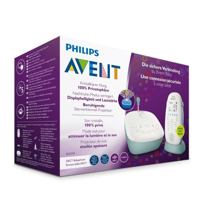 | Libellé | PHILIPS AVENT SCD731/26 - Ecoute bébé connecté - Connexion sécurisée & privée - Mode nocturne - Projecteur d'étoiles |
