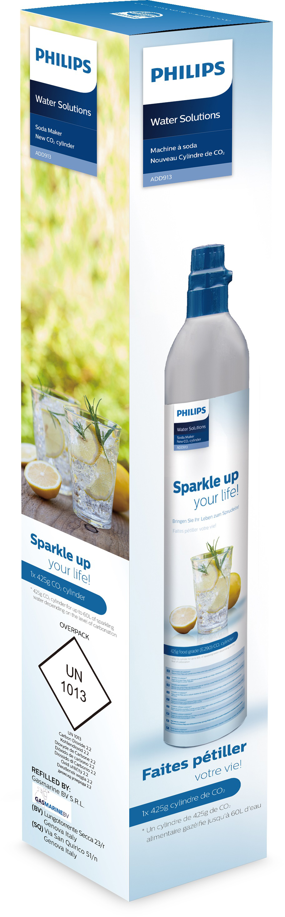 Libellé philips cylindre de réserve de CO2 425g, pour 60L d'eau pétillante, compatible toutes marques de machine à soda.