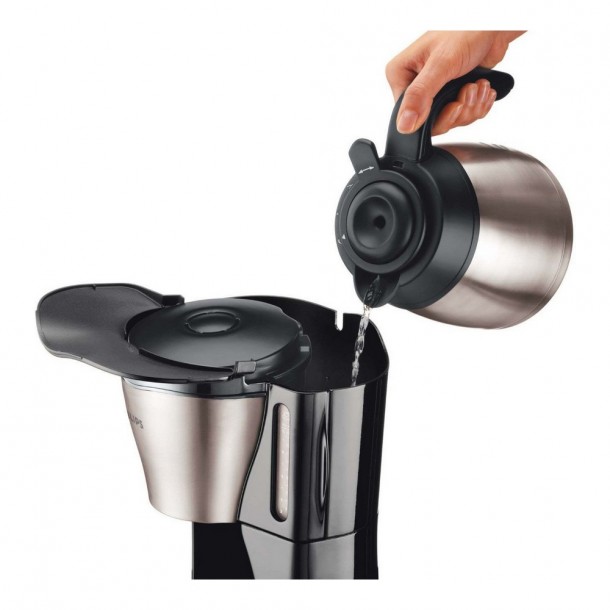 Cafetière filtre 10/15 tasses isotherme - Un café toujours à bonne température sans effort ! - Verseuse en acier inoxydable incassable d'une capacité de 1.2 L - Elle s'arrête automatiquement après que le café soit passé, et le maintient au chaud pendant de nombreuses heures, sans qu'il devienne amer - Arrêt automatique - Système anti-gouttes pour retirer la verseuse à tout moment, même en cours de préparation du café - Porte-filtre pivotant amovible - Range-cordon - Puissance 1000 W - Garantie 2 ans.
