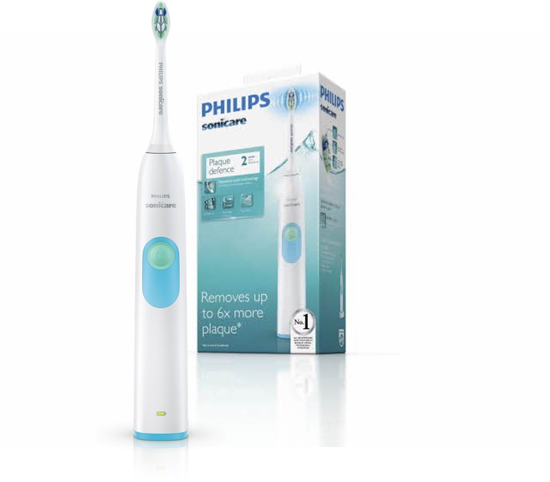 Brosse à dent - Sonicare Série 2 plaque défense - Avec ses 31 000 mouvements par minute, cette brosse à dents élimine jusqu'à 6 fois plus de plaque dentaire qu'une brosse à dent classique - La tête de brosse inclinée permet un meilleur accès aux dents du fond et aux endroits difficiles à atteindre - La fonction EasyStart permet de régler le niveau de puissance de la brosse à dents au cours des 14 premières utilisations pour vous aider dans la transition entre les deux types de brosses à dents - Minuteur Quadpacer pour un brossage complet de votre bouche , un signal sonore toutes les 30 secondes vous indiquera qu'il est temps de passer à une autre zone de la bouche et la fonction Smartimer vous aidera à respecter le temps de brossage recommandé par les dentistes, soit 2 minutes - Témoin lumineux de charge batterie - Autonomie jusqu'à 2 semaines (batterie NiMH) - Compatible appareils orthodontiques, couronnes et facettes - Référence tête de rechange HX9022.07 - Coloris Blanc & Bleu ciel - Garantie 2 ans.