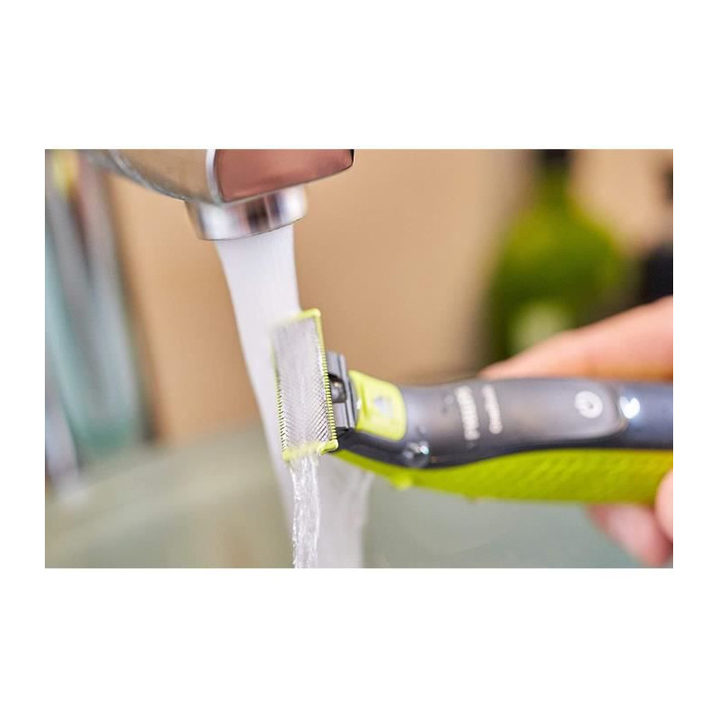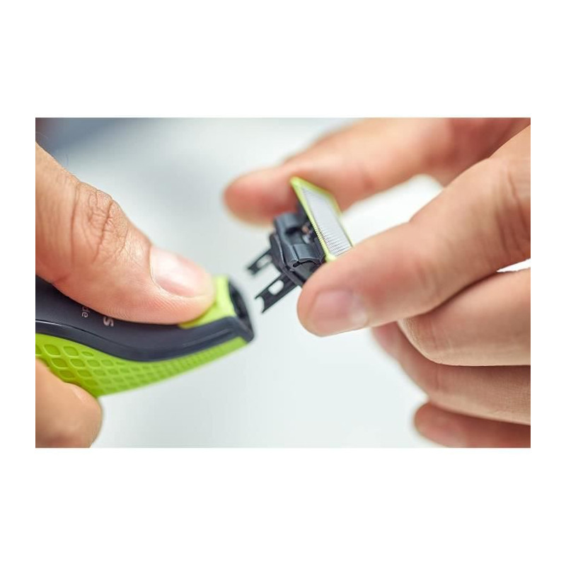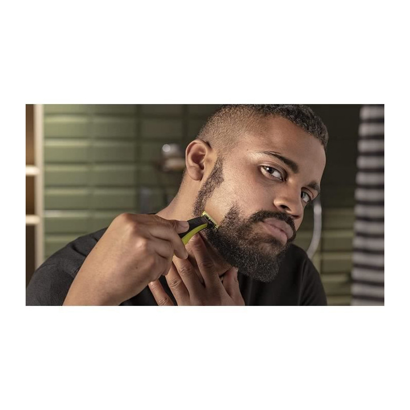 Philips OneBlade Rasoir Online est un 3-en-1 : elle permet de tailler, raser et définir les contours de la barbe. Cette tondeuse est dotée d'une lame effectuant 200 mouvements par seconde. qui rase tous les poils grâce a ses 3 sabots en fonction de