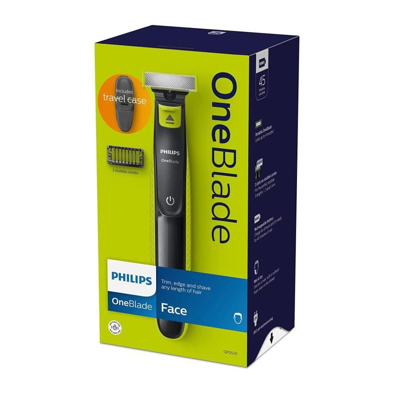 PHILIPS ONEBLADE QP2520/65 Rasoir/ Tondeuse a barbe 3 sabots avec un etui - Autonomie 45 minutes - 2 W -