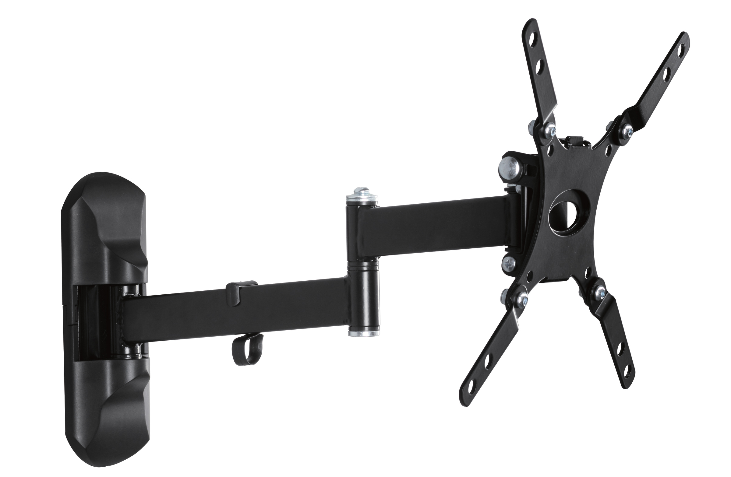 Support mural universel pour téléviseurs à écran plat avec une diagonale d'écran jusqu'à 42 pouces. Le support est très robuste et permet de monter votre téléviseur horizontalement sur le mur. Le support est à la fois rotatif et inclinable, vous permettant de déterminer l'angle de vision le plus idéal. Le support est fait de matériaux robustes et solides et a une capacité de charge d'au moins 25 kg. Convient à toutes les tailles VESA de 100x100 à 400x400 et est livré avec tous les accessoires de montage.