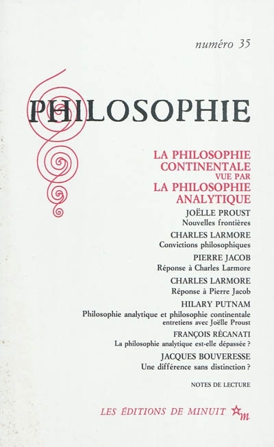 | Libellé | Philosophie - Numéro 35 : La philosophie continentale vue par la philosophie analytique (Revue) |