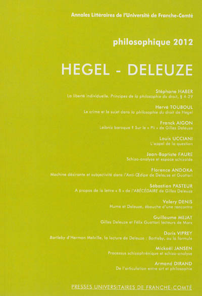 | Libellé | PHILOSOPHIQUE 2012. HEGEL - DELEUZE (Revue) |