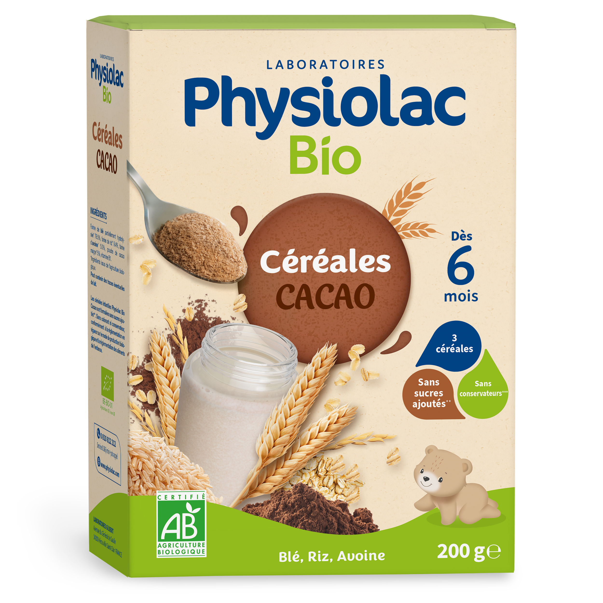 | Libellé | Physiolac Céréales Cacao 200g Bio |