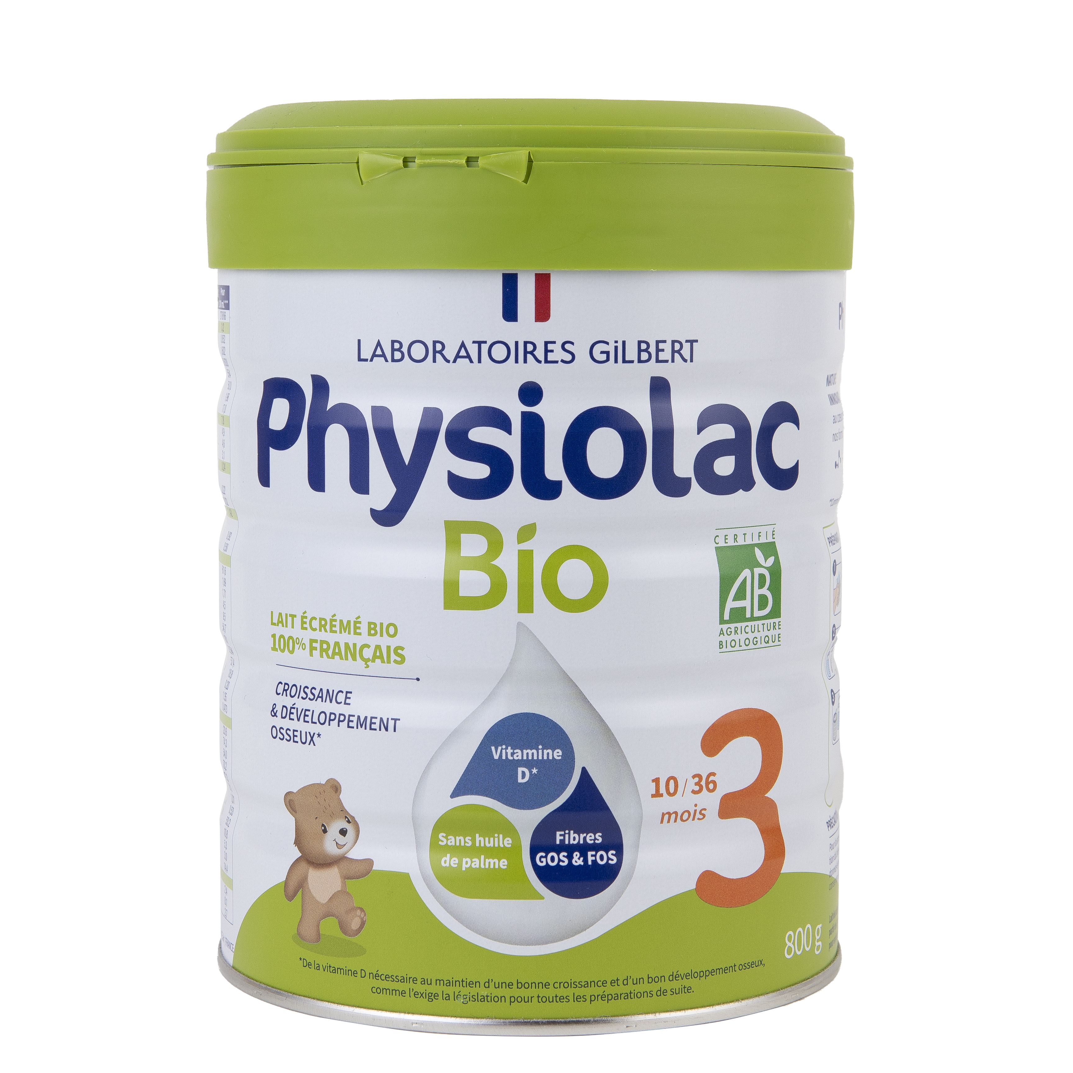 Physiolac lait infantile bio croissance 3 ème âge 800g