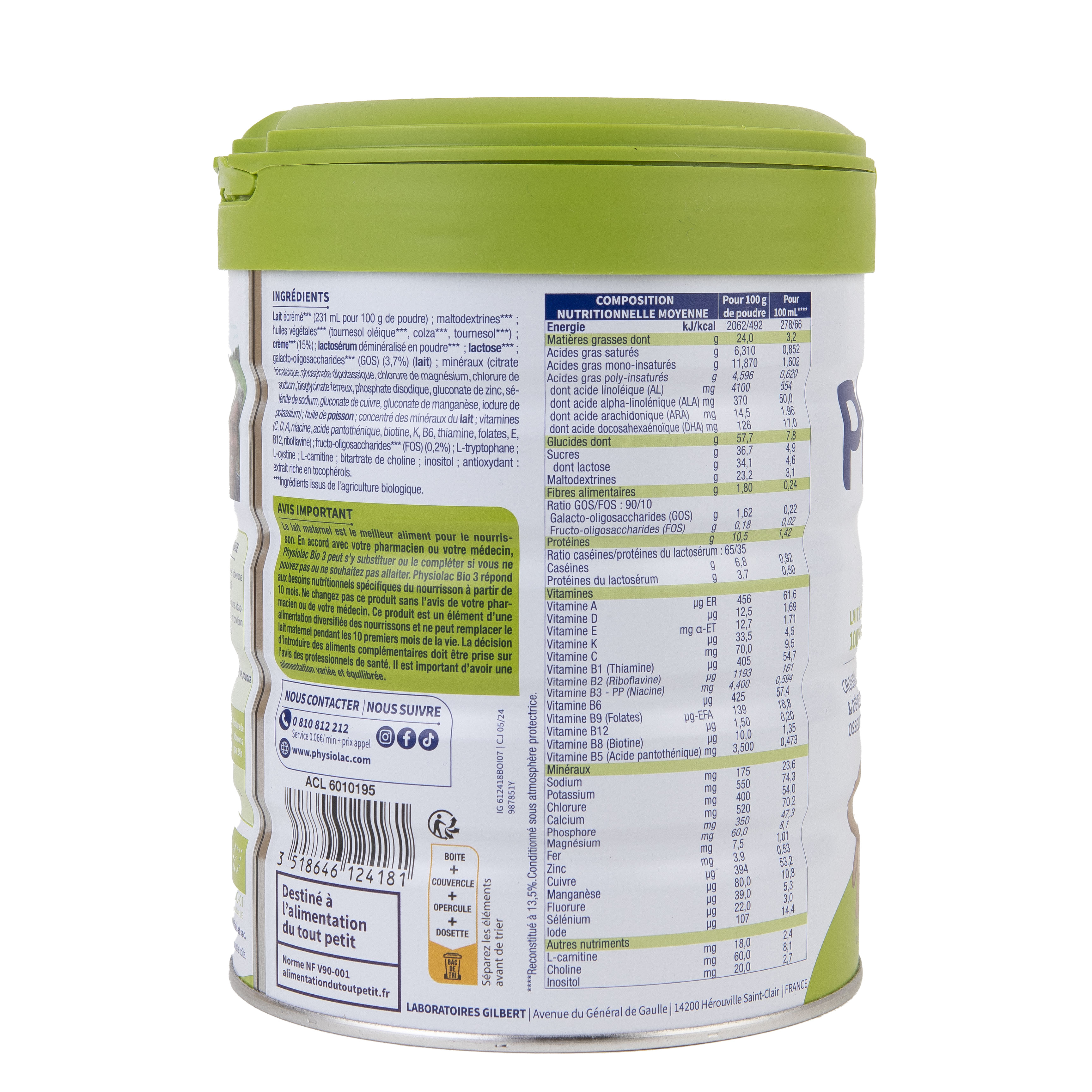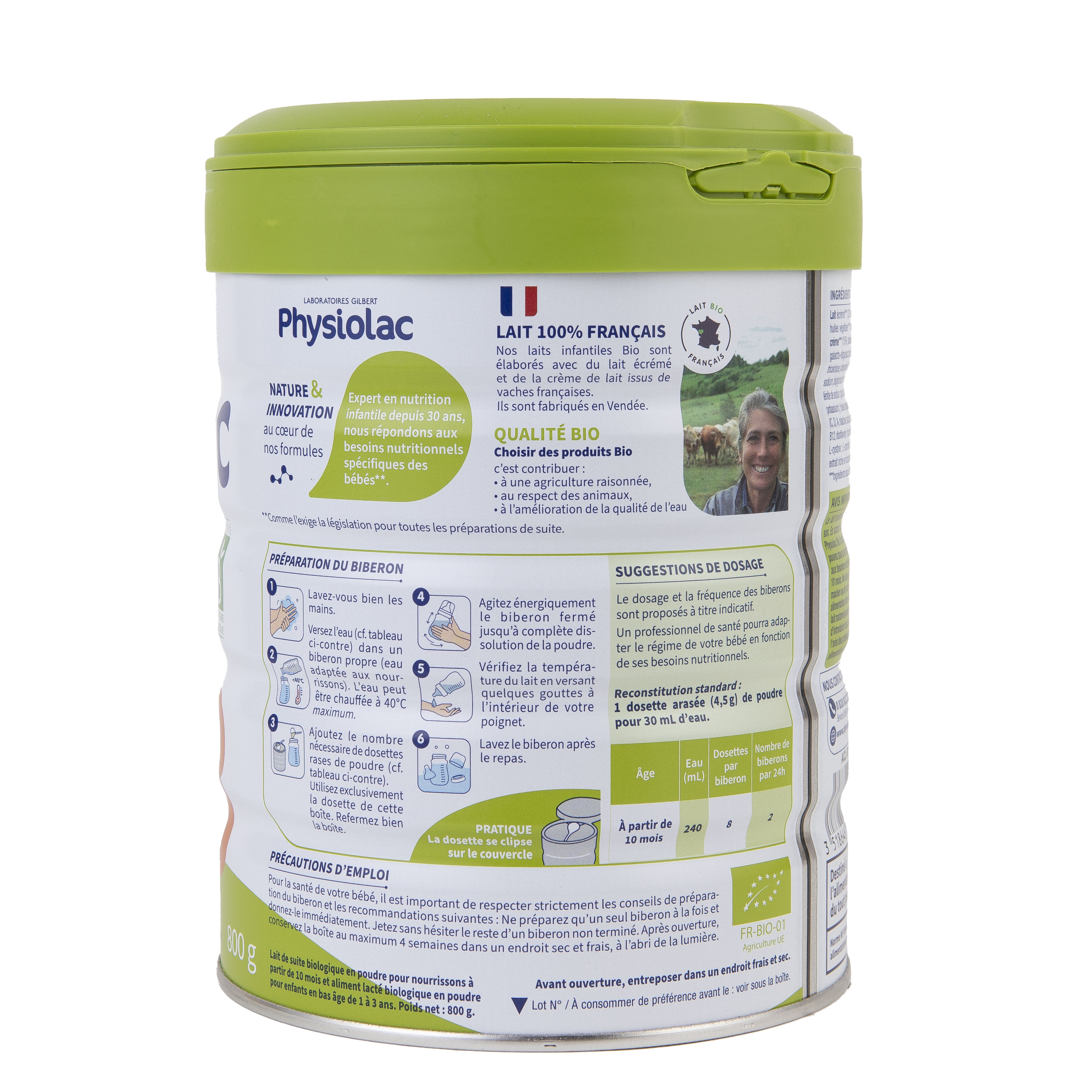 Physiolac BIO des Laboratoires Gilbert, propose des produits : spécialement développés et validés par des experts en nutrition infantile, répondant aux besoins nutritionnels spécifiques des bébés*, certifiés agriculture biologique avec un lait écrémé 100% français, fabriqués en France, formulés sans huile de palme. Physiolac BIO 3 contient notamment : du DHA* (oméga 3), de la crème de lait BIO, des fibres BIO GOS et FOS, du bisglycinate de fer assimilable, de la vitamine D nécessaire au maintien d’une bonne croissance et d’un bon développement osseux.