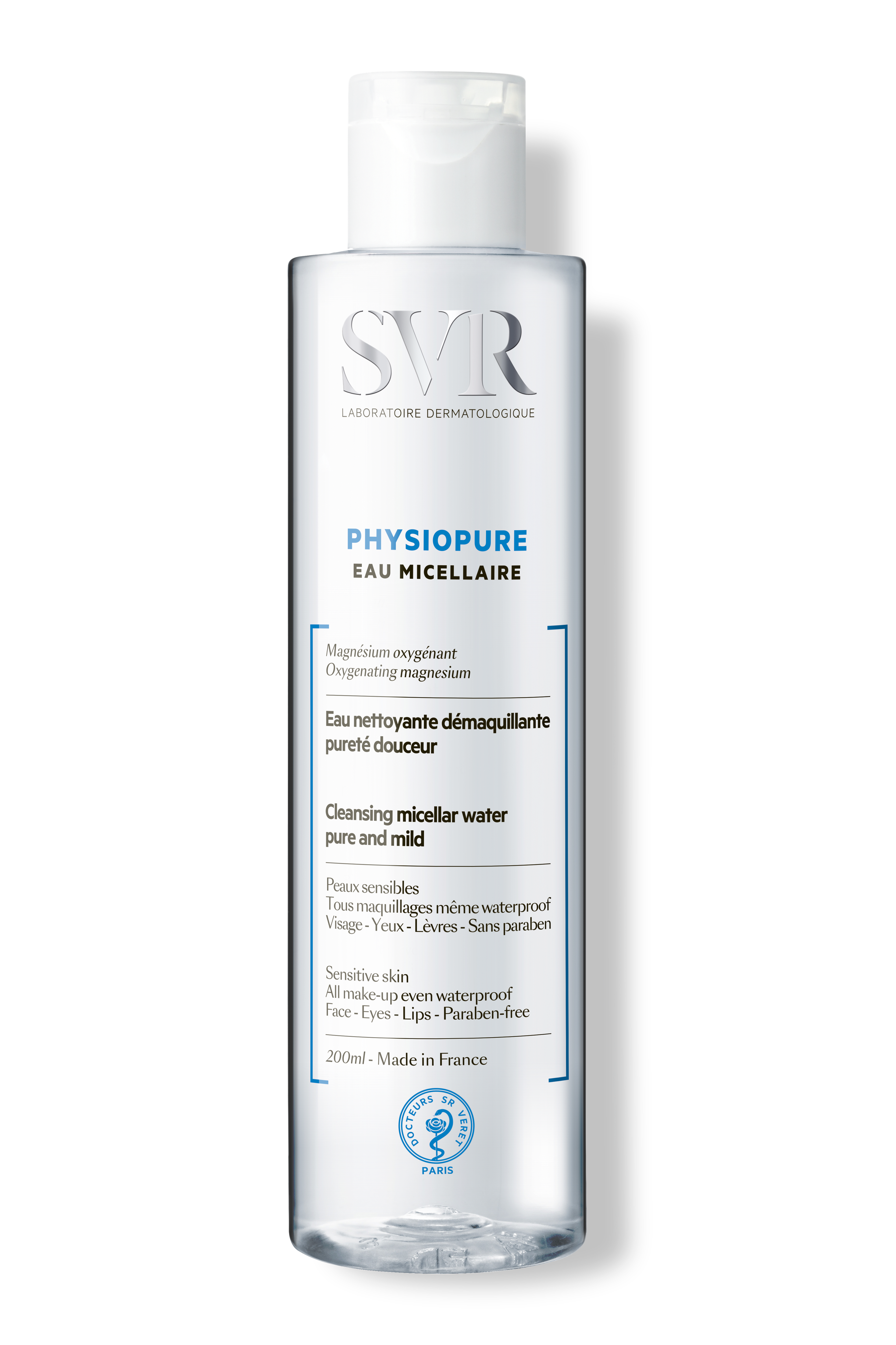 SVR Physiopure Eau Micellaire Eau Nettoyante Démaquillante Pureté Douceur 200 ml est une eau micellaire pour le visage, les yeux et les lèvres, qui est spécialement formulée pour le démaquillage des peaux sensibles. Cette eau micellaire est formulée à base de Magnésium Oxygénant, et est idéale pour démaquiller et nettoyer le visage en un seul geste de tous les types de maquillage, même waterproof. Elle élimine efficacement les impuretés pour une peau nette et oxygénée. Elle ne nécessite aucun rinçage, une simple application à l'aide d'un coton suffit.