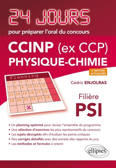 Libellé Physique-chimie 24 jours pour préparer loral du concours CCINP ex CCP - Filière PSI - 2e édition actualisée (Broché)