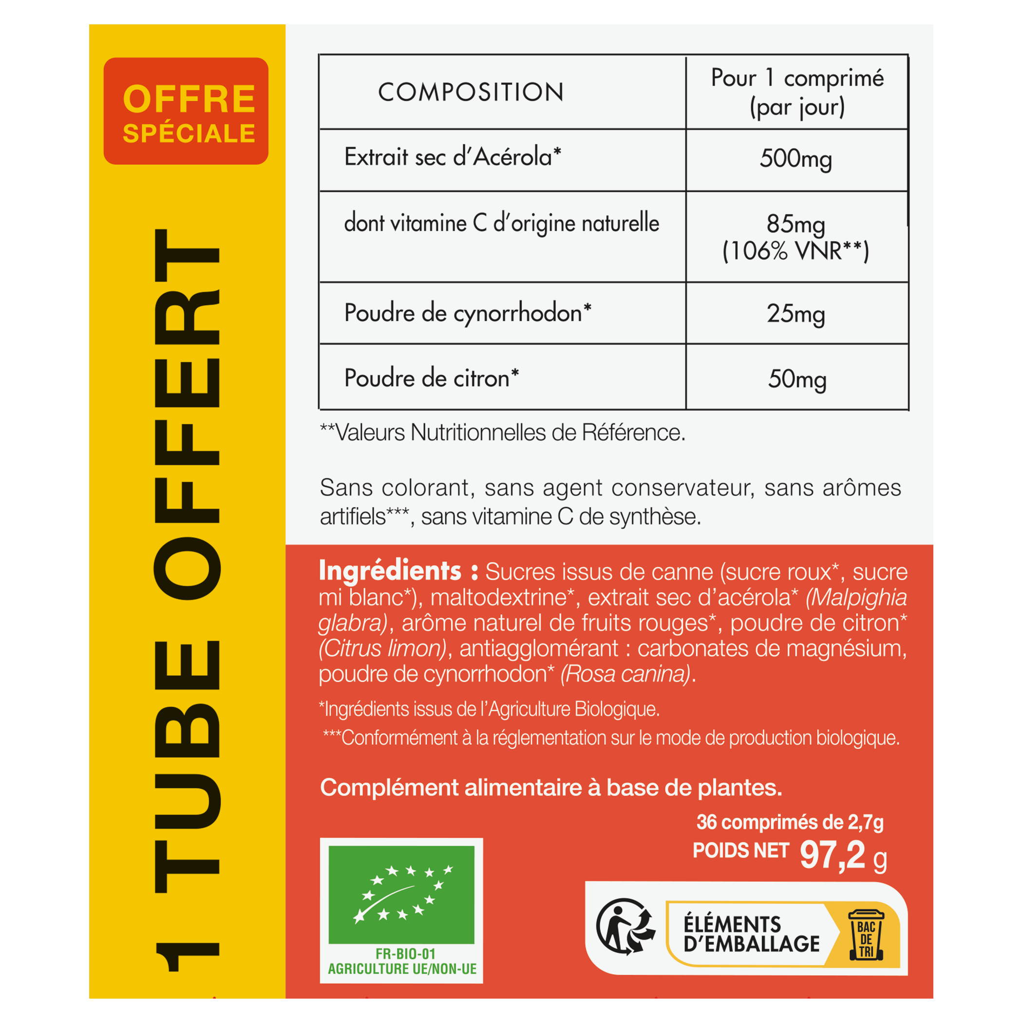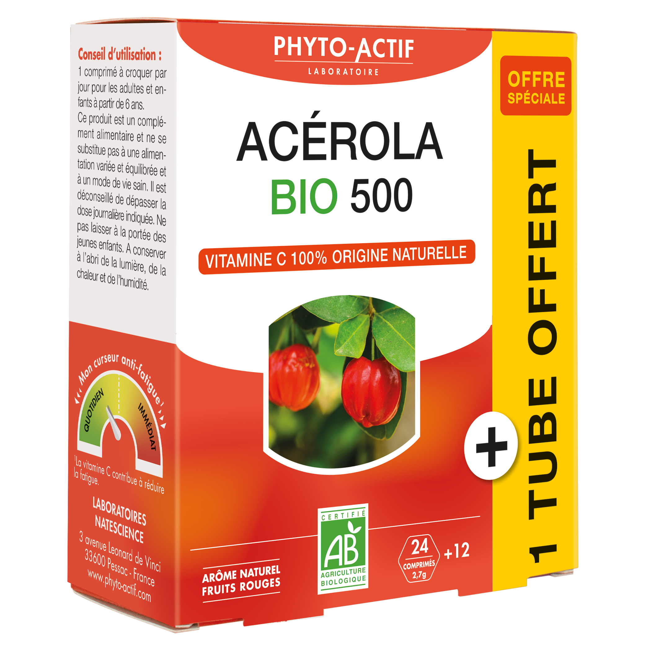 | Libellé | Phyto Actif Acerola Bio 500 Bio + 1Tube offert Etui |