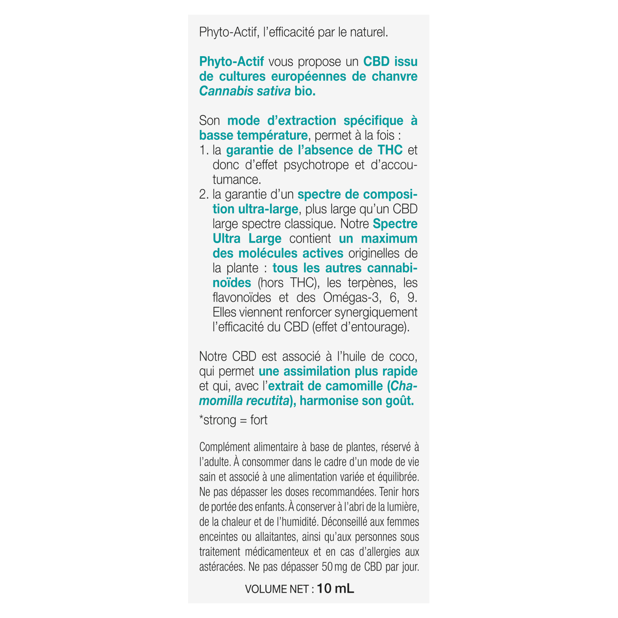 Phyto-Actif vous propose un CBD au spectre ultra large, issu de culture européennes de chanvre Cannabis Sativa bio. Il est idéal pour les adeptes du CBD ou ceux qui sont soumis à une fatigue ou stress forts.