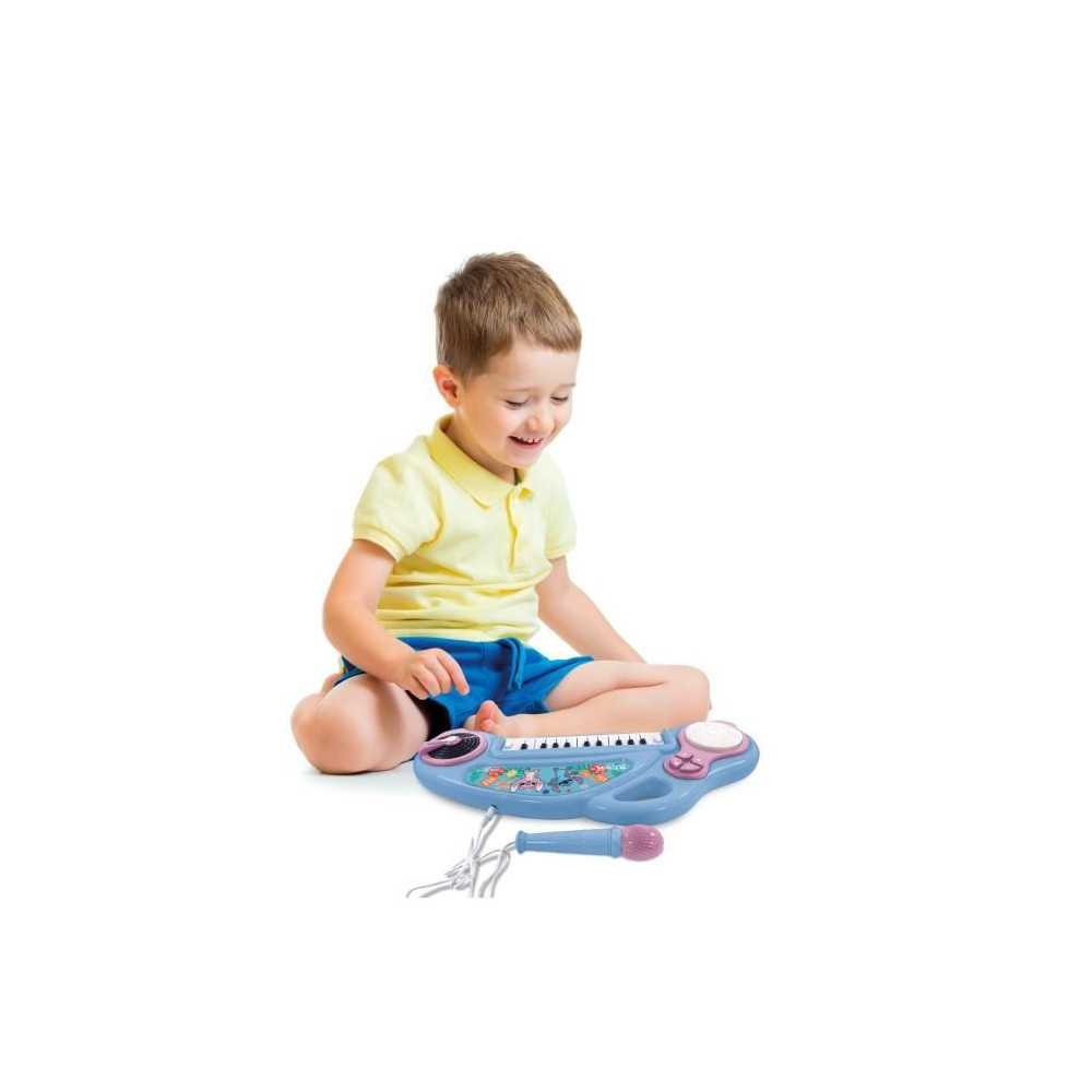 *Joue du piano et chante grâce au clavier électronique avec microphone Stitch ! *4 types d'effets sonores : piano, guitare, violon, saxophone. *22 mélodies de démonstrations *Comme un vrai DJ, amuse-toi à changer les mélodies à l'aide du bouton batterie et de la platine *Microphone inclus *Volume réglable