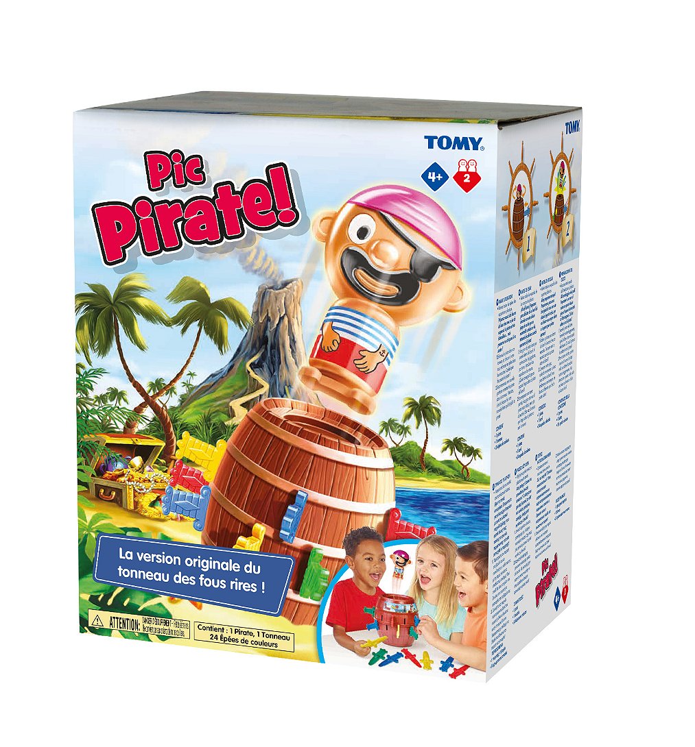 Voici un pirate particulièrement chatouilleux… Le but du jeu : ne pas être celui qui l’aura trop chatouillé en plantant son épée, pour ne pas être éliminé et rester le dernier joueur en course ! Mais attention, une épée mal plantée et hop ! Le pirate s’expulse de son tonneau ! Alors, qui sera le plus malin et se débarrassera de toutes ses épées sans faire sauter le Pirate ? Suspens ! Un jeu pour des heures de rigolade entre copains ou en famille ! De 2 à 4 joueurs. Dès 4 ans. • Découvrez la version originale du tonneau des fous rires et le plus chatouilleux de tous les pirates ! Enfilez à tour de rôle une épée dans le tonneau, le premier qui fait sauter le pirate a perdu ! • Inclus : 1 tonneau, 1 pirate, 24 épées colorées (6 rouges, 6 bleues, 6 jaunes, 6 vertes) • A partir de 4 ans • Durée de la partie : aléatoire • Nombre de joueurs : de 2 à 4 joueurs • Un jeu de suspens qui provoque surprises et crises de rire, accessible à tous les membres de la famille, même les plus petits