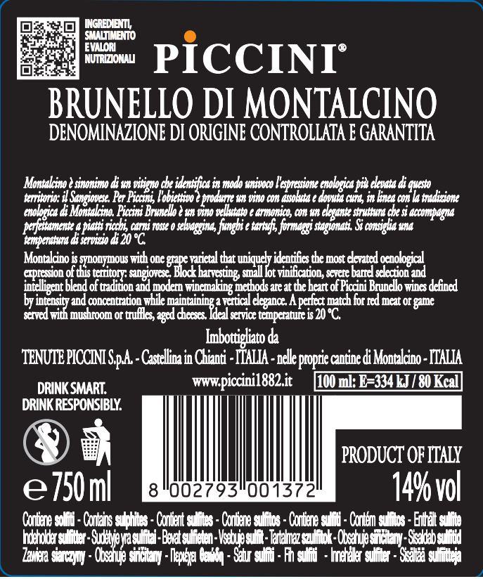 | Libellé | Piccini Brunello Di Montalcino, 2018, ITALIE - Rouge - 75 cl |