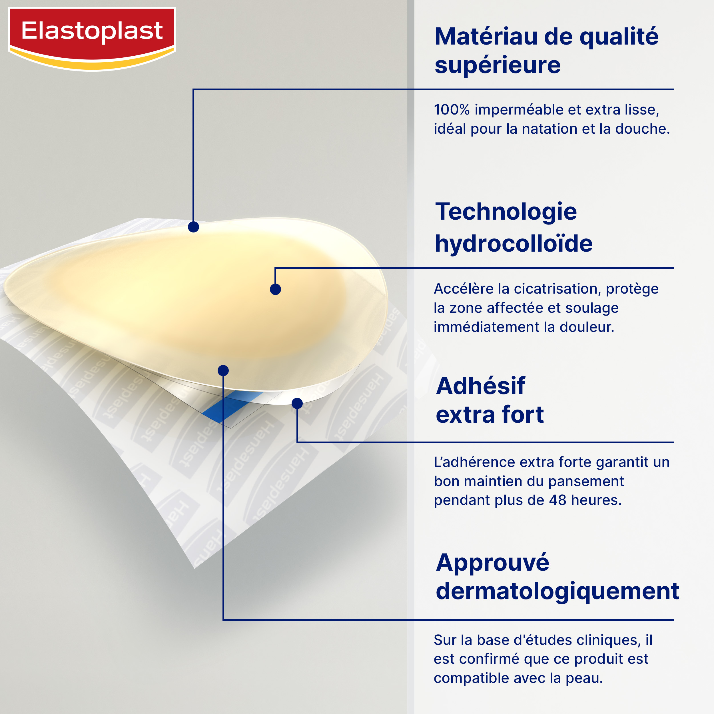 Les 5 Pansements Ampoules Grande Taille : - Soulagent la douleur causée par les pressions ou les frottements - Protègent des salissures et des bactéries - Pratiquement invisible - Résistants à l'eau - Favorisent la cicatrisation grâce à la technologie hydrocolloïde - Adhèrent pendant plusieurs jours, mais des variations individuelles sont possibles